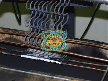 同样的工艺用于聚脂片或聚脂带制成的绝热导体。由于聚脂片具有抗高温性,比以往材料导热性更小。因为这种物质能直接与铜结合,可在片子的一面或两面镀上碳氧化合物树脂,使表面可热接。绝热导体连续处理全套设备。见,它包括连续运送导体和绝缘带的设备,用机械和化学方法清洁导体的设备;双向卷带机,具有红外线温度控制的高频发生器;如果需要的话,再加一个辐射加热器用作最后处理。40KW450KHZRF加热器可以5m/min的速度将导线加热到大约300聂氏度。固定在工件线圈末端的红外测温计,始终监视着导线温度,用来控制高频发生器的功率以获得适当的温度。